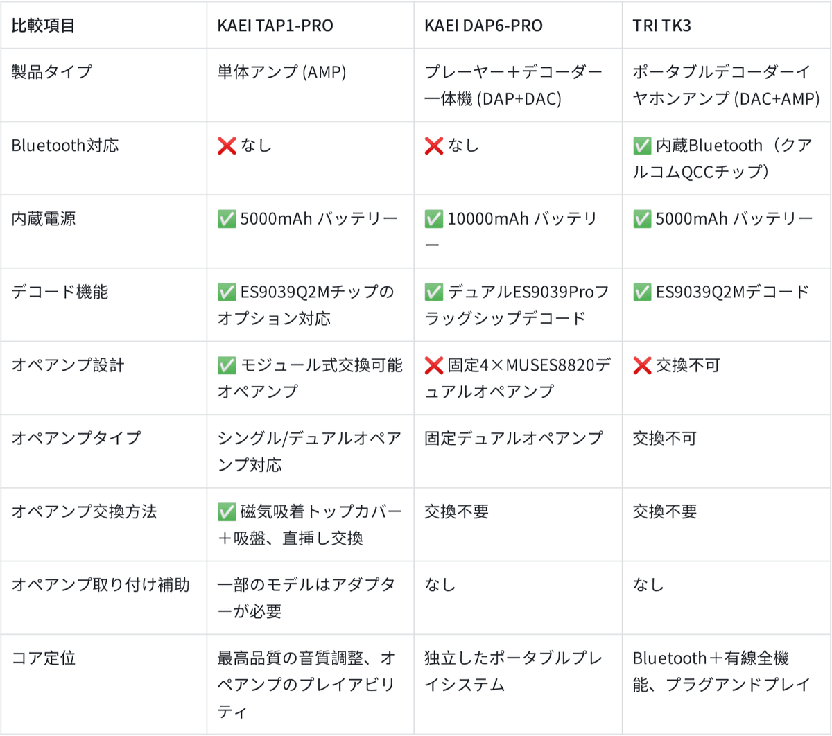 TAP1 - PRO、DAP6 - PRO および TRI TK3 の重要な違いを理解する
