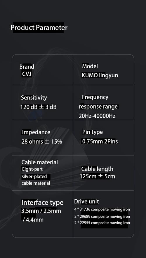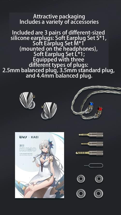 Kumo凌雲HIFIイヤホン入耳式16動鉄平衡4.4 3.5有線チューニング可能CVJ連名KAEI