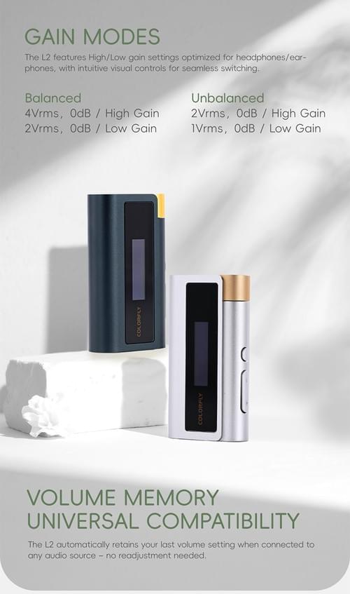 [COLORFLY] PCM 32ビット/768キロヘルツのDSD512エンコードに対応したL2 USB DACアンプ、ES9039Q2Mチップを採用し、3.5ミリと4.4ミリのインターフェイスを備え
