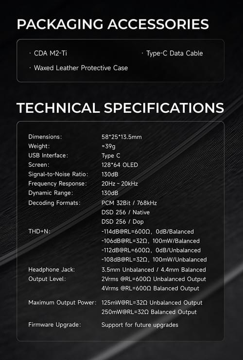 CDA m2-tiをご購入後、type-cケーブル1本とオイルワックス革カバーをご提供いたします。